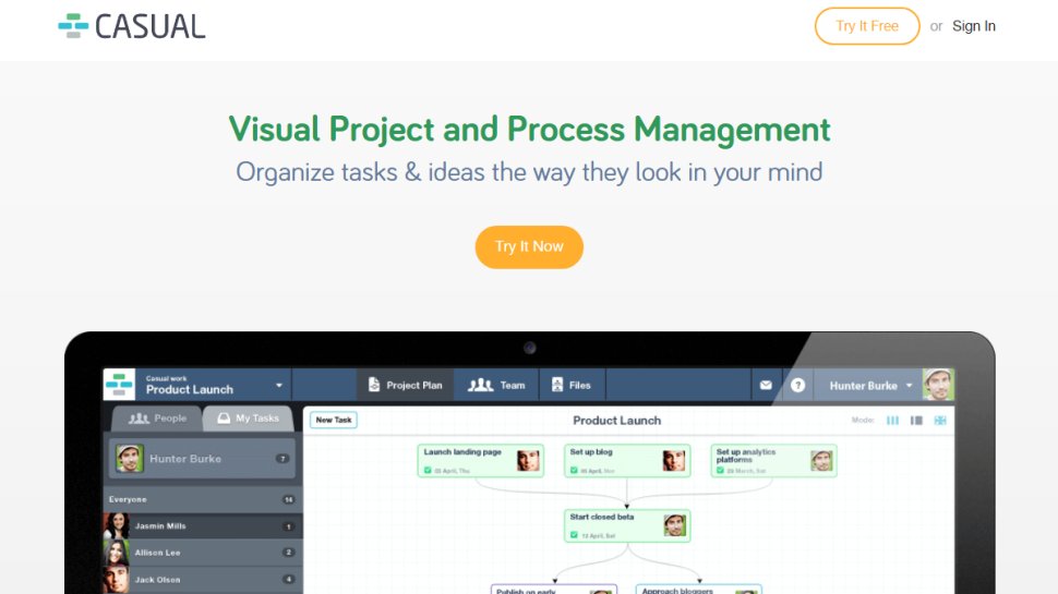 Instead of Kanban boards or Gantt charts, Casual is built exclusively around a single flowchart interface where you organize projects by drawing lines between tasks, and assign team members to each step in the flowchart. Each team member gets a task list based on the flowchart, but essentially project managers that use Casual track progress through the single-pane flowchart.